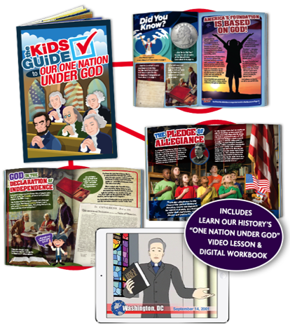 The Kids Guide to Our One Nation Under God gives children this important lesson in easy-to-understand language and with entertaining illustrations that kids love. As an added bonus, we’re giving you unlimited access to the "One Nation Under God" streaming video and digital workbook from Learn Our History!